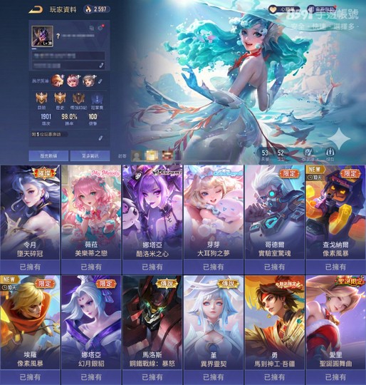 【Garena帳有綁定、戰場傳說、V6、53英、52造】墮天令月/碧琪源寶/美樂蒂/酷洛米/大耳狗|98%戰場|附切結