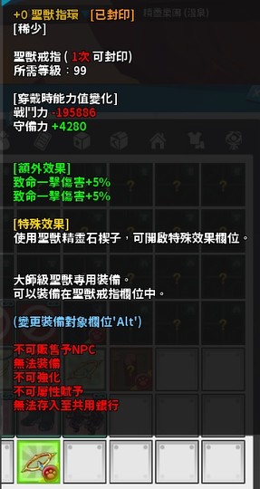 聖獸指環 致命一擊傷害 爆傷 10% 全新 已封