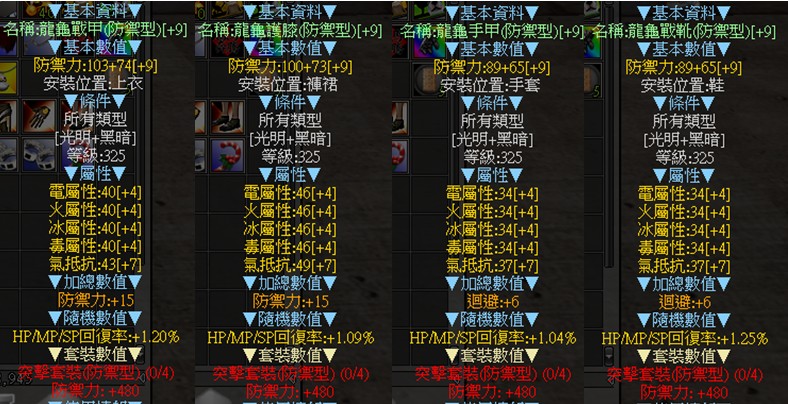 +9 龍龜 (防禦) 一套 【高3回,計4.58 %】
