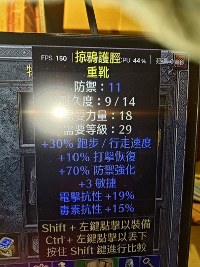 30跑鞋 +10/打及回覆。 70防 +3敏 電抗19毒抗15