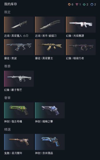 【銅牌、5槍、2刀】黑市蝴蝶刀、異星獵人小刀、黑波暴徒、暗夜行者幻象、異星暴徒、光炫幻象、離子幻象