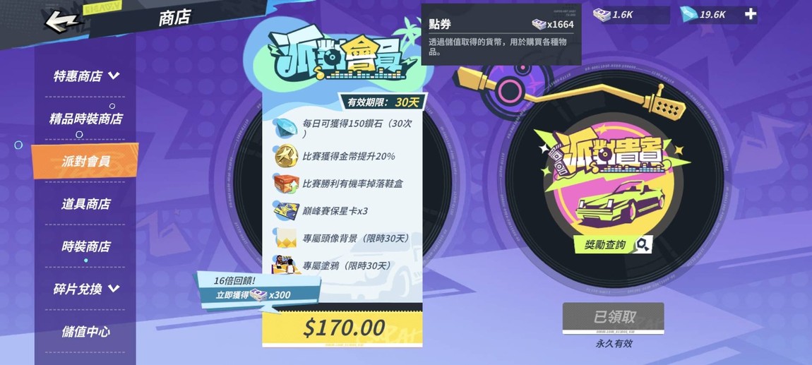 招募冷卻卡*3、疾光鞋盒25箱、開鞋鑰匙30個、潮人劵312張、風尚劵193張、黑卡7張