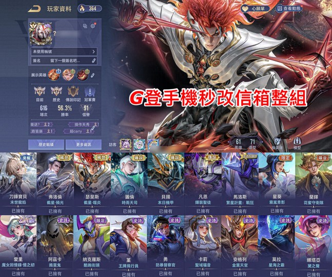 【多帳號賣場】G登單信箱整組給刀鋒5級雙截星星海末日多直購水水號🔥