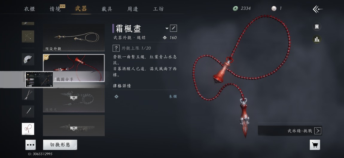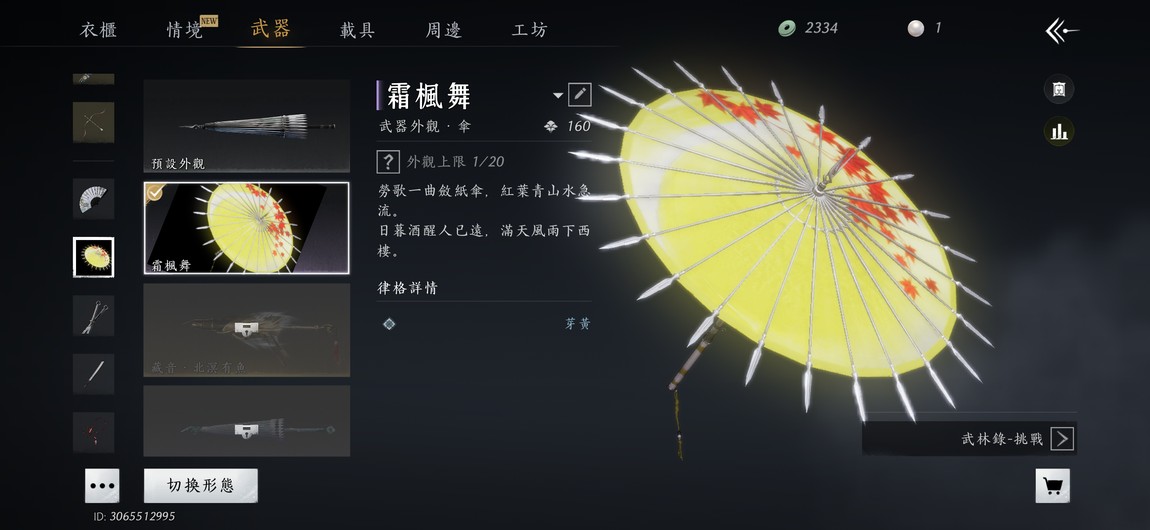 【84等】屬戲春 無名劍槍 武學100% 萬劍歸宗 功能馬 採 副本武器時裝 2件 傘+鏈