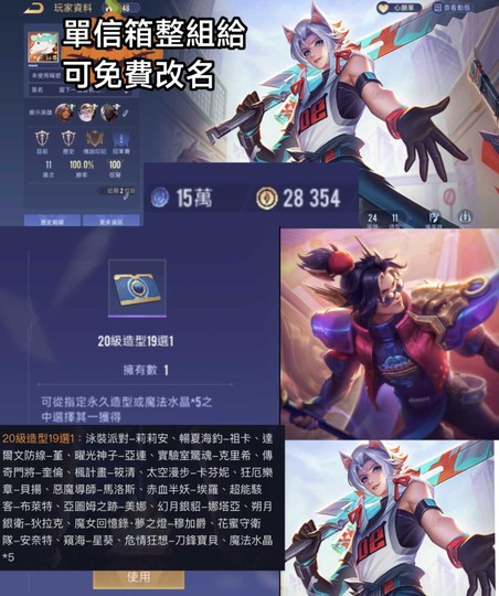 【Garena帳有綁定、白銀、無VIP、24英、11造】2月盛典聖典20級造型19選1,亞連動物派對,趙雲新年,金幣2.8萬,奧義15萬