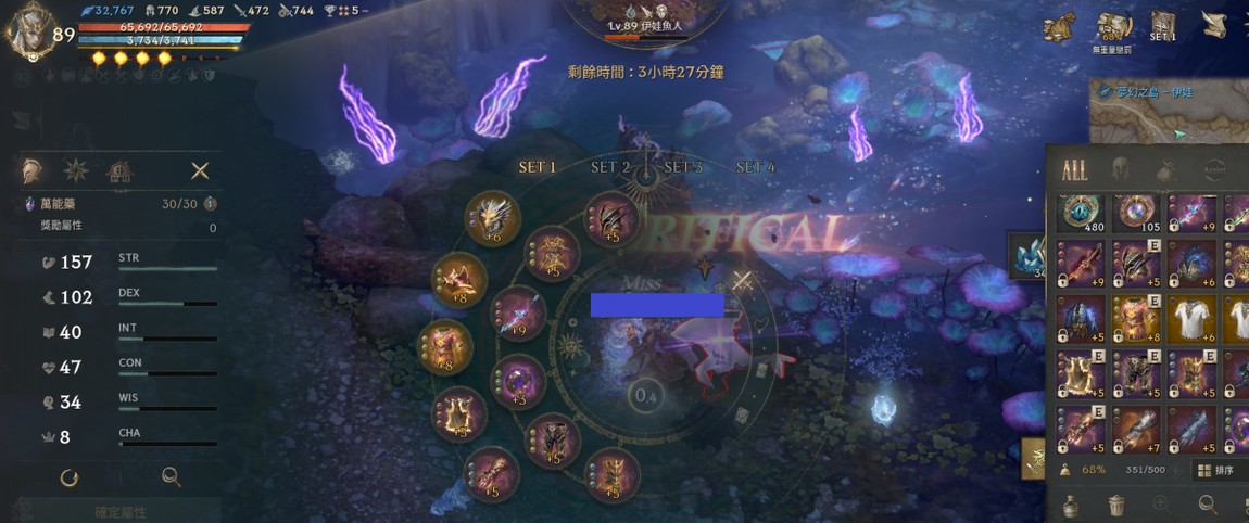 【防禦素質】:血量65,692/防770/魔防587/攻472/命744/減傷284/暈命59/暈抗180%