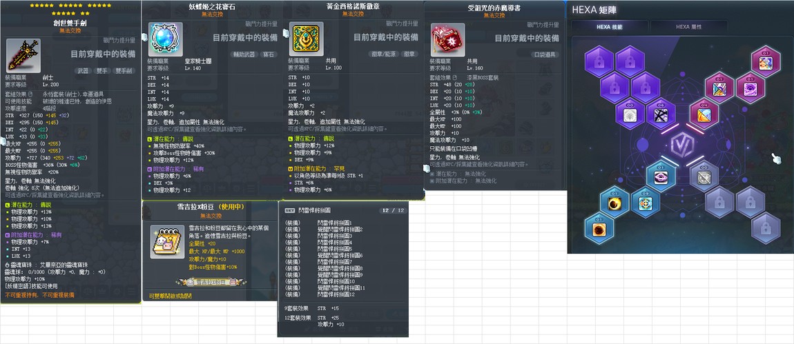 大致上綁定裝就這些 有沒截圖到的想問也可以 還有一些內裝掉寶裝輪迴P寵之類ㄉ 正在慢慢售出 如果有需要也可告知