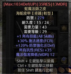 s13亞天梯 蛇皮 35頂抗 蛇魔法師之皮
