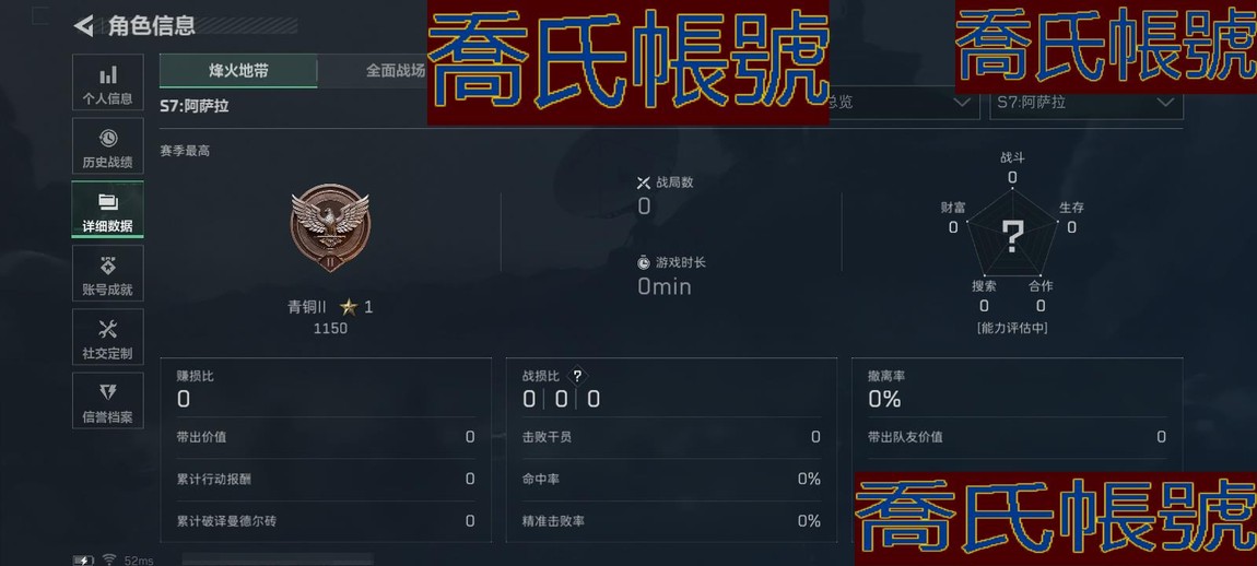 【初始號】【11等】總資產:29M,哈夫幣:1921W,武器皮膚:2,烽火22級:青銅,基礎安全箱