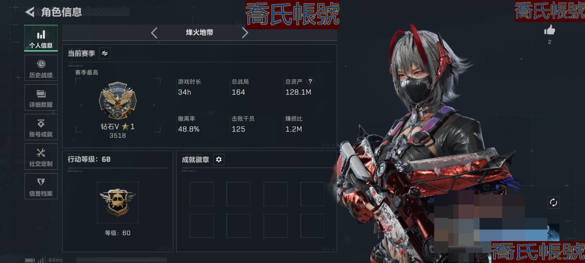【初始號】【11等】總資產:130M,哈夫幣:5200W,武器皮膚:35,烽火60級:鑽石,列兵,