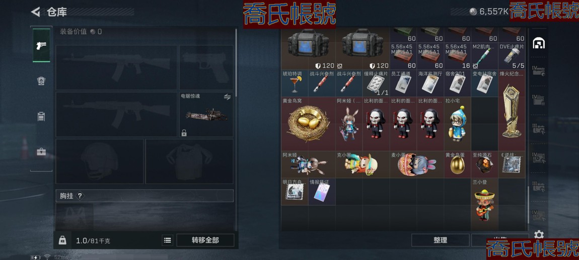 【OBSQRQE341142】總資產:150M,哈夫幣:655W,武器皮膚:4,烽火60級:【安全箱】基礎安全箱;【特勤處等級】倉庫LV.8,靶場LV.5,訓練中心LV.6;【幹員皮膚】露娜黑天際線,紅狼電鋸驚魂,深藍不破誓約;【近戰武器】近戰武器-電鋸驚魂;【步槍皮膚】KC17突擊步槍-電鋸驚魂;【射手步槍皮膚】M14射手步槍-電鋸驚魂;【霰彈槍皮膚】S12K霰彈槍-電鋸驚魂;(資訊源於賣家釋出,實際資訊以驗號為準)【QQ登入】總資產150.8m/ 現金6557k/ 黑天際線/電鋸驚魂紅狼/送葬人無題密令/不破誓約/電鋸驚魂