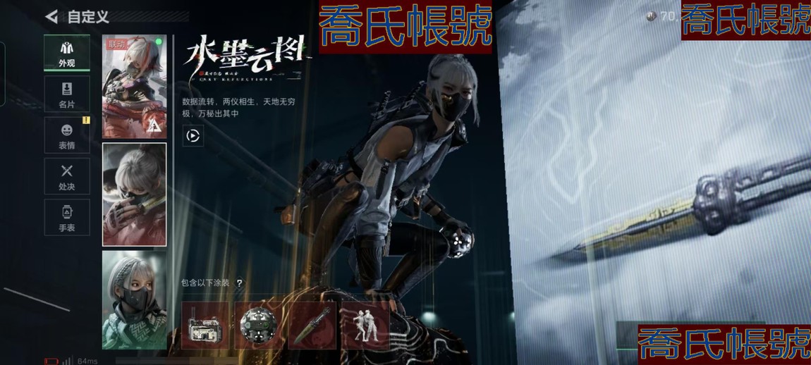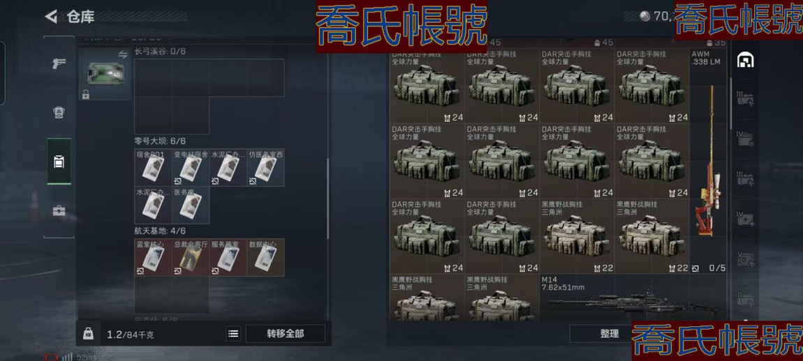 【OBSUUHK210242】總資產:247M,哈夫幣:7016W,武器皮膚:17,烽火60級:鑽石,【安全箱】S7頂級安全箱;【特勤處等級】倉庫LV.8,靶場LV.6,訓練中心LV.7;【幹員皮膚】駭爪維什戴爾,駭爪水墨雲圖,紅狼電鋸驚魂;【近戰武器】近戰武器-黑鷹;【步槍皮膚】M4A1突擊步槍-蝕金玫瑰,SCAR-H戰鬥步槍-水墨雲圖,騰龍突擊步槍-撈點薯條,AK-12突擊步槍-特斯拉線圈,K437突擊步槍-幾何解構,ASh-12戰鬥步槍-鵝鴨殺,SCAR-H戰鬥步槍-啟航,KC17突擊步槍-電鋸驚魂;【衝鋒槍皮膚】UZI衝鋒槍-特斯拉線圈,勇士衝鋒槍-能天使-午夜郵差,QCQ171衝鋒槍-鵝鴨殺,SR-3M緊湊突擊步槍-英雄;【狙擊步槍皮膚】AWM狙擊步槍-撈點薯條,R93狙擊步槍-維什戴爾;【輕機槍皮膚】QJB201輕機槍-鵝鴨殺;【手槍皮膚】93R-撈點薯條;(資訊源於賣家釋出,實際資訊以驗號為準)【QQ登入】維什戴爾全套+水墨雲圖全套+紅狼-電鋸驚魂套+S7賽季9格保險箱+總資產247.9M(流動223.6M+不動24.3M)+純幣70M+特勤等級(倉庫8體力7負重6)+烽火60級+鵝鴨殺捆綁包+撈點薯條捆綁包+特斯拉捆綁包+咖啡豆+119發AW