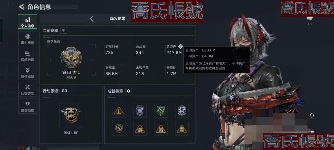 【初始號】【11等】總資產:247M,哈夫幣:7016W,武器皮膚:17,烽火60級:鑽石,S7頂