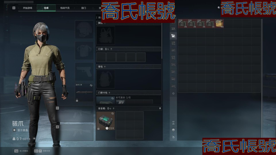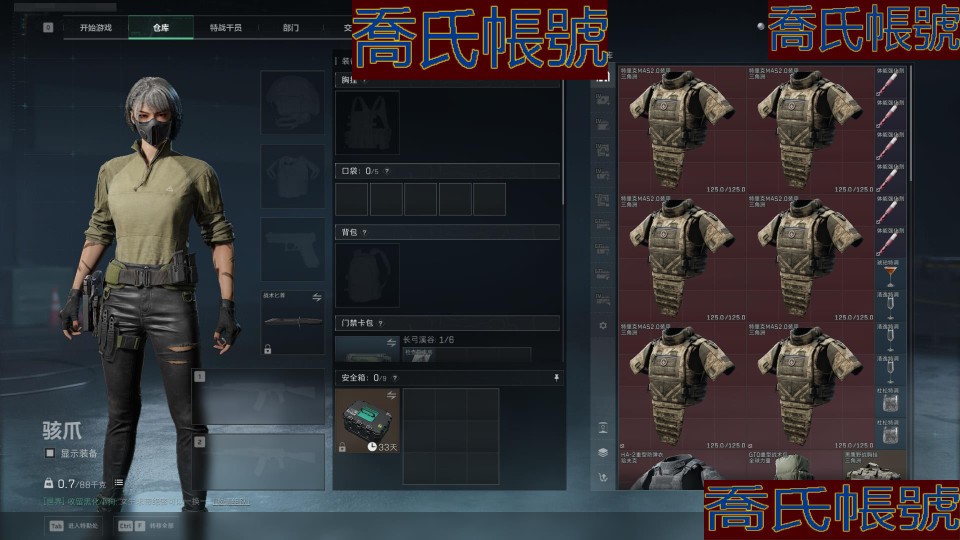 【OBSUUHK300242】總資產:180M,哈夫幣:2000W,烽火60級:鑽石,【安全箱】S7頂級安全箱;【特勤處等級】倉庫LV.10,靶場LV.7,訓練中心LV.7;(資訊源於賣家釋出,實際資訊以驗號為準)【QQ登入】60級 部門等級全滿 滿級倉庫 滿級體力 滿級負重 只有潛水跟收藏室是1級 其他特勤全滿!3X3 9格賽季保險 21件6甲 5件6頭 70發AW子彈 60發7.62X51紅彈 收藏室有幾個紅 外加一個烽火杯 除了沒幹員皮膚跟刀皮其他什麼都有了!