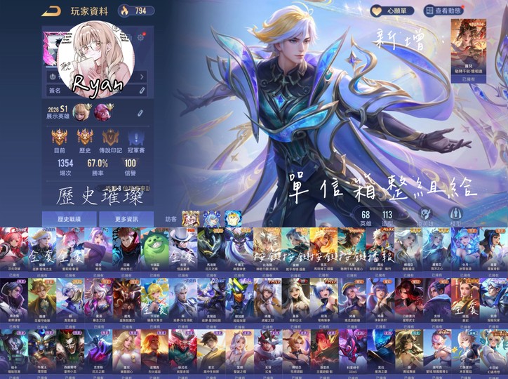 【Garena帳有綁定、戰場傳說、V8、68英、113造】歷史璀璨次元菫 雲海 虎仗 蜜莉姆 基德 多新年