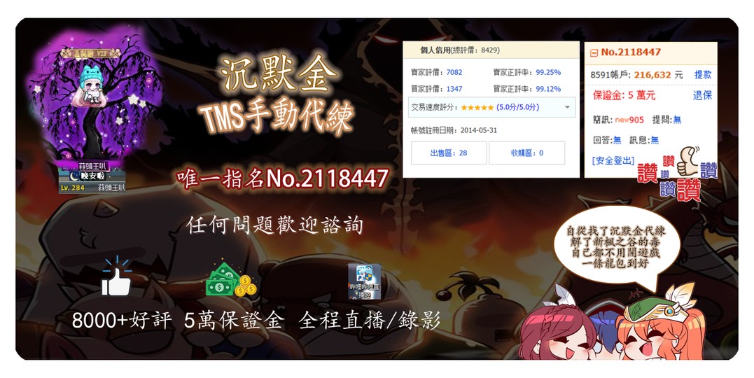 沉默金🔥全區金幣🔥網唯一上萬好評🔥全伺服代練|包等|包時包月代練/全程直播