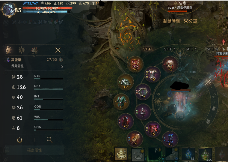 85等58%(持續提升中) 滿紅技能 三紫技能(處決、地獄香爐、附身)