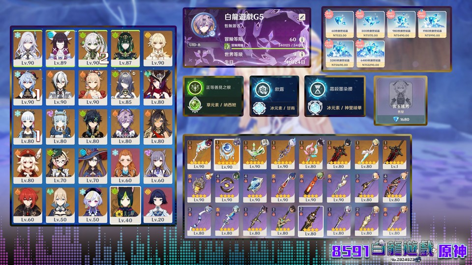 【女、60等、23金角、8金武】G5 菈烏瑪0+1、奈芙爾、少女、絲柯克、伊涅芙、杜林、草神2+1、恰斯卡、僕人