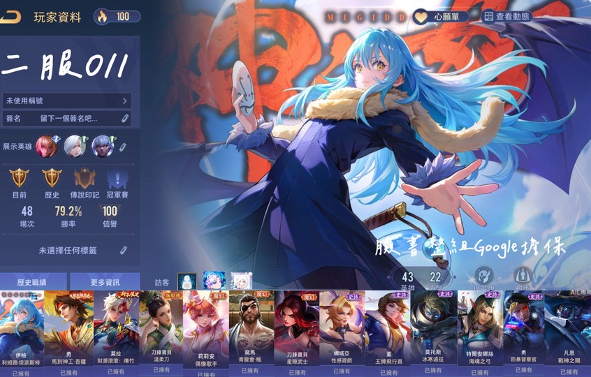 【Google帳有綁定、黃金、無VIP、43英、22造】高勝率利姆路/新年