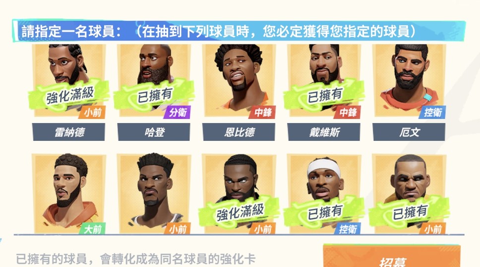 天賦卡也夠多去選擇要玩的角色