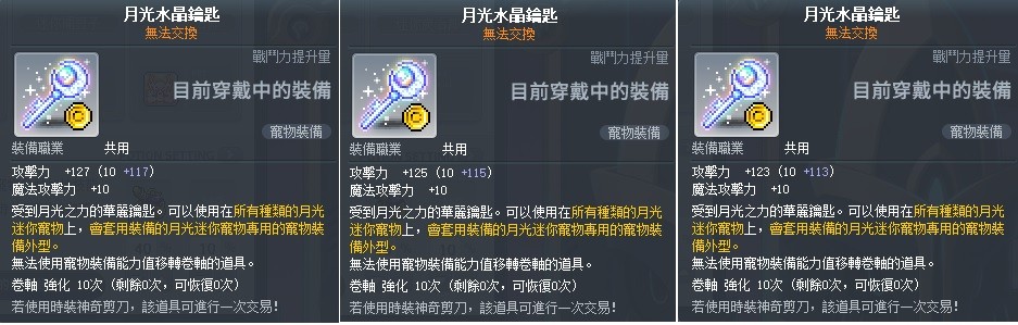【P寵鑰匙(全服幫轉)】127攻 + 125攻 + 123攻 3把物攻 月光水晶鑰匙