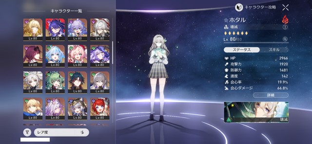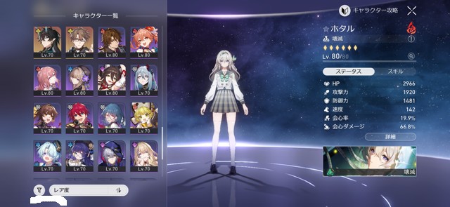 角色大概齊全,各種隊伍皆可組成,剛入手爻光0+1、火花0+1
