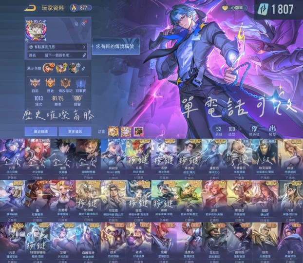 【Garena帳無綁無連、永恆傳說、V10、126英、999造】多帳號賣場出清 歡迎詢問