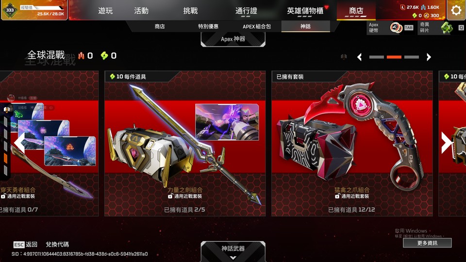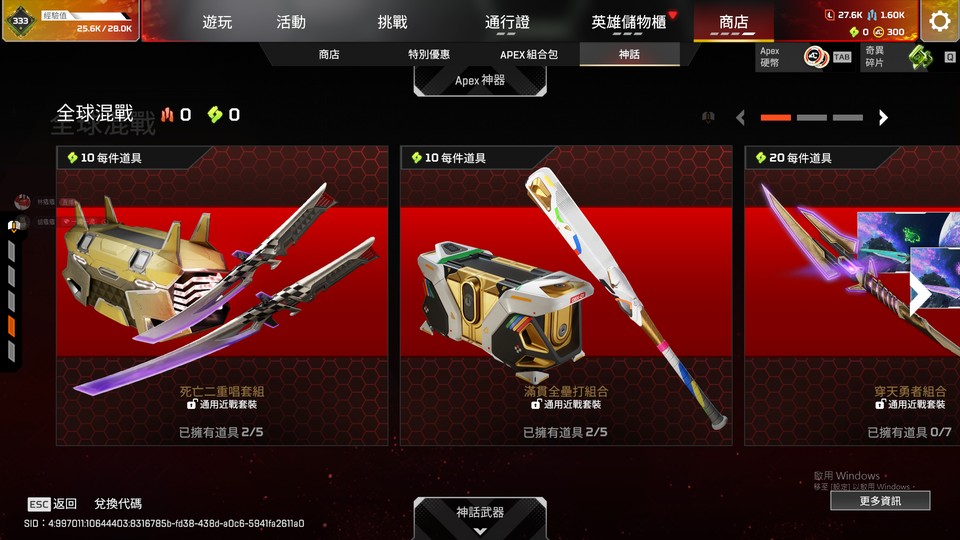 【833等、8傳、1威、675金】尋血犬/邦加/亡靈/卡塔/球棒/力量大劍/爪刀/雙刀 R99/和平 神話槍皮