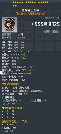 【滅龍騎士盔甲】17星 傳罕 36%幸+11%幸 小資 退谷
