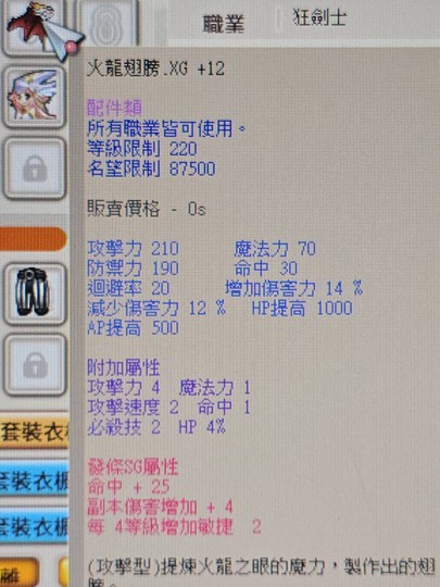 如圖示賣火龍翅膀X12 SG發條4副本 4HP
