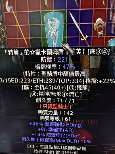 S13天梯 術士軍臨 撒卡蘭姆盾14ED 46增傷 菁英底材 0S 聖騎士