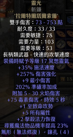 S13 無形 斬鐮 靈光 傭兵神裝 257ED 17冥想