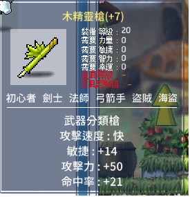 【+7木精靈槍】14敏 50AD 21命中 攻擊速度:快 優於海神叉 金字