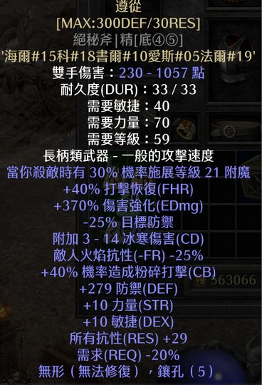 S13天梯 千傷【遵從/無形絕密斧】DEF/RES近頂*畢業武器*