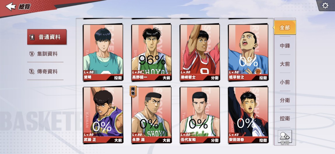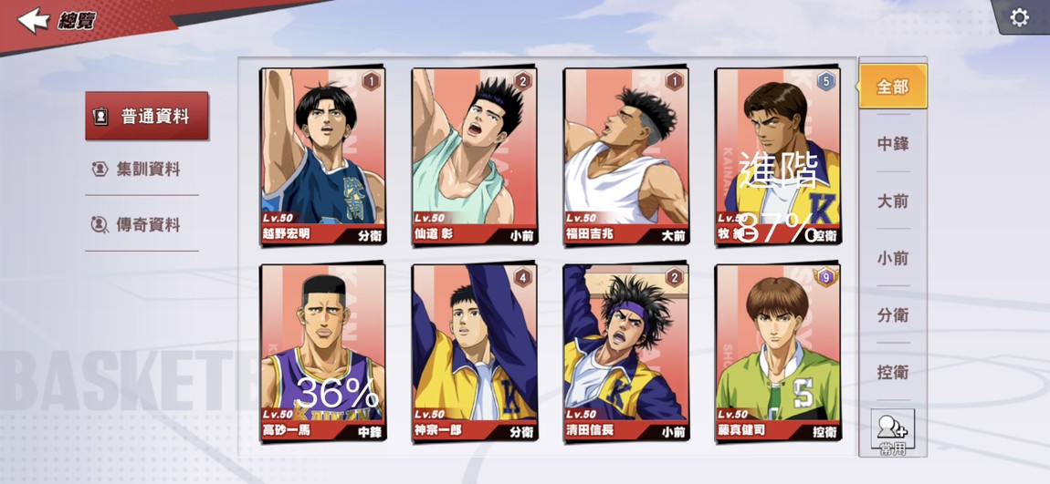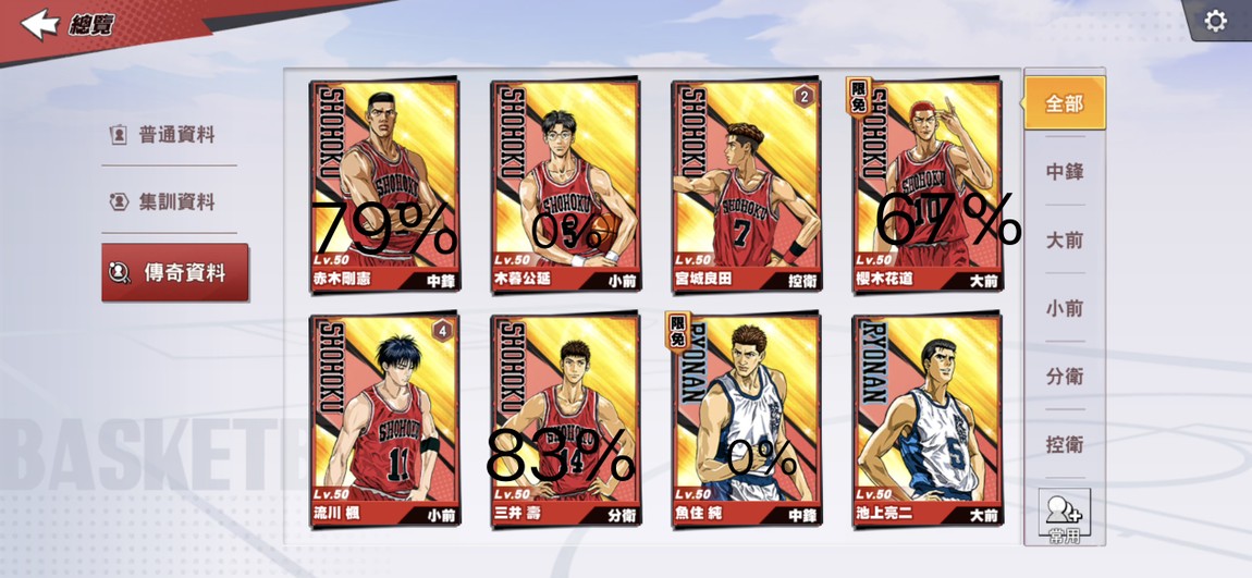 傳奇角多隻練好,集高跟進階赤木 集宮都練滿了,傳福也可上場