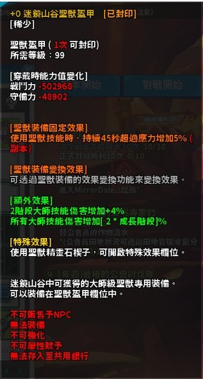 迷鏡山谷聖獸盔甲 持續45秒 超適應力+5%