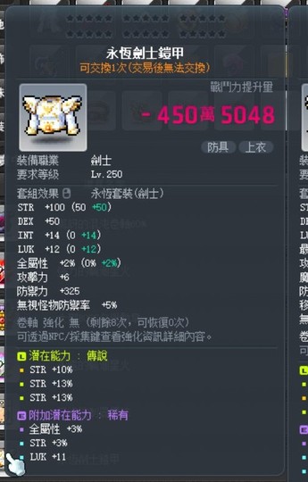 永恆劍士鎧甲 次頂36%力、附加雙排6%力、星火50力+2%全 2000T