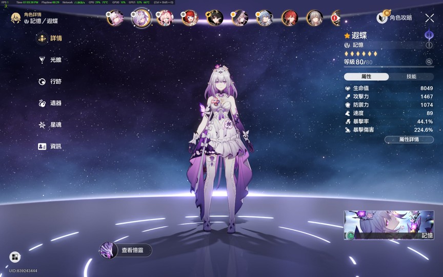 【女、70等、21金角、10金專】遐蝶 大黑塔超級大成隊伍 小保底已墊70抽 超高cp值帳號 五星太多寫在商品介紹