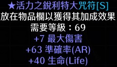 S13 天梯DLC 賣活力之銳利特大咒符 +7最大傷害+63準確率+40生命