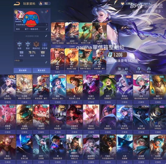 【Garena帳有綁定、鑽石、無VIP、78英、41造】令月墮天 新年比洛爾 夸克 夜叉 朵莉亞 凡恩 緹莉 蘿兒 熹妃 牛靈冥 魔女