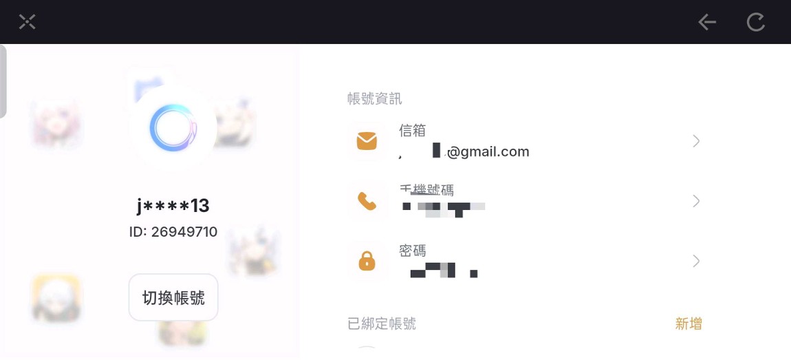 物品種類: 帳號
