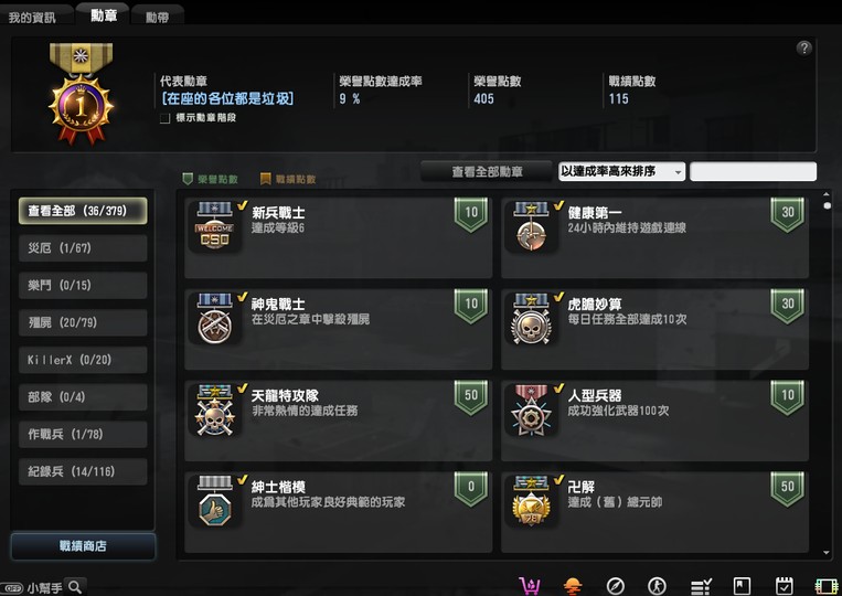 稱號:藍色 榮譽點數:405 遊戲等級:430