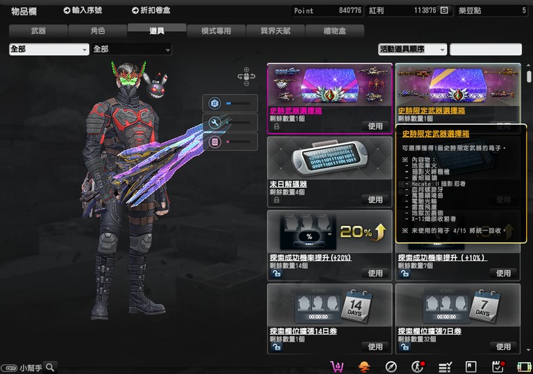 史詩限定箱和史詩武器選擇箱都還沒開 留給買家自己選擇 (4/15箱子會回收 )