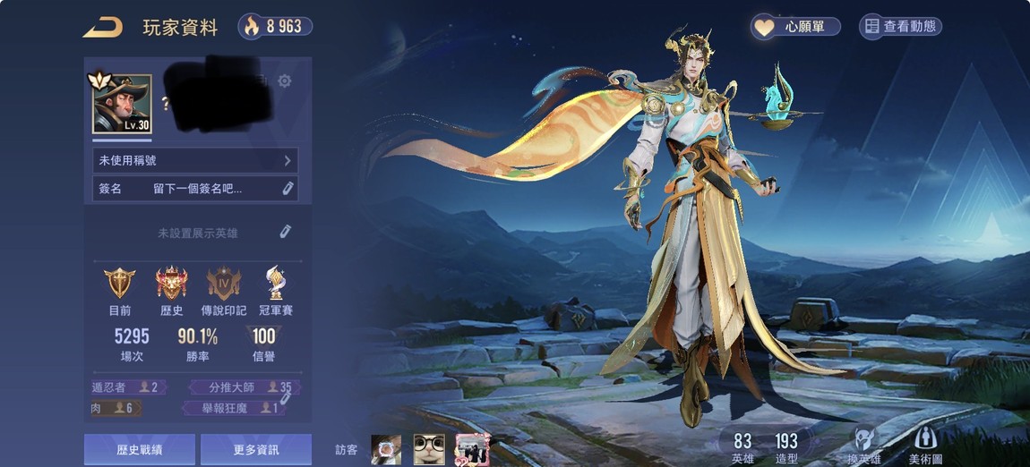 【Garena帳無綁無連、永恆傳說、V8、83英、193造】售歷史永恆高勝,綁無無,造型抓個大概!