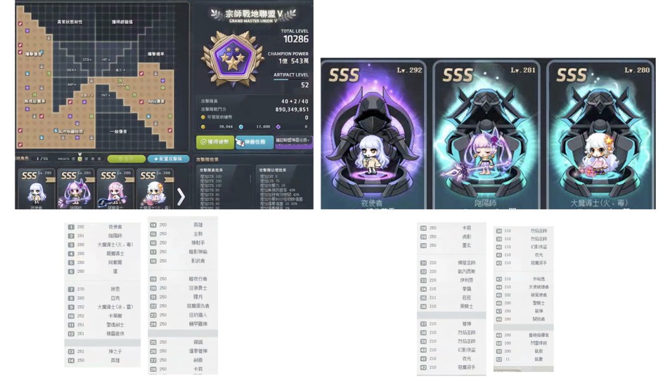 【292等、夜使者、10286戰地、740AUT】6本帳號 ,冠軍聯盟3個SS級,