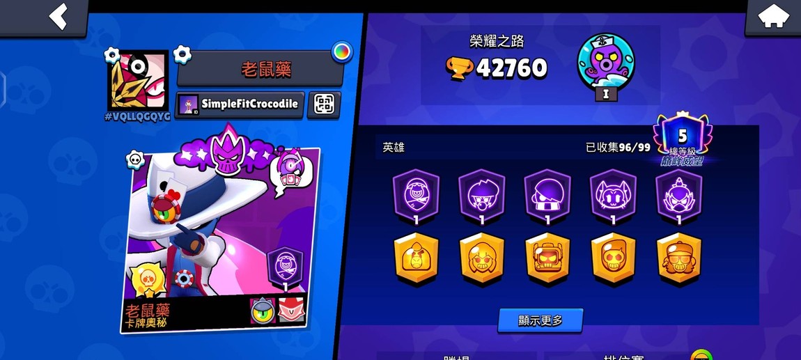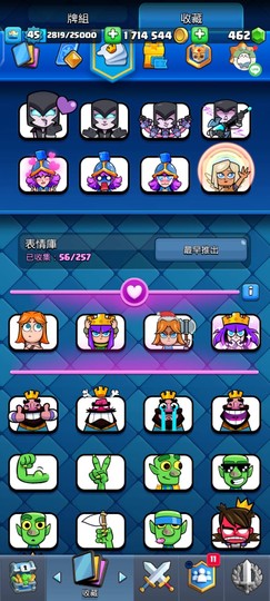 荒野 42760杯 角色幾乎都有 滿級 有極限威能 造型很多 附帶 皇室戰爭 7568杯