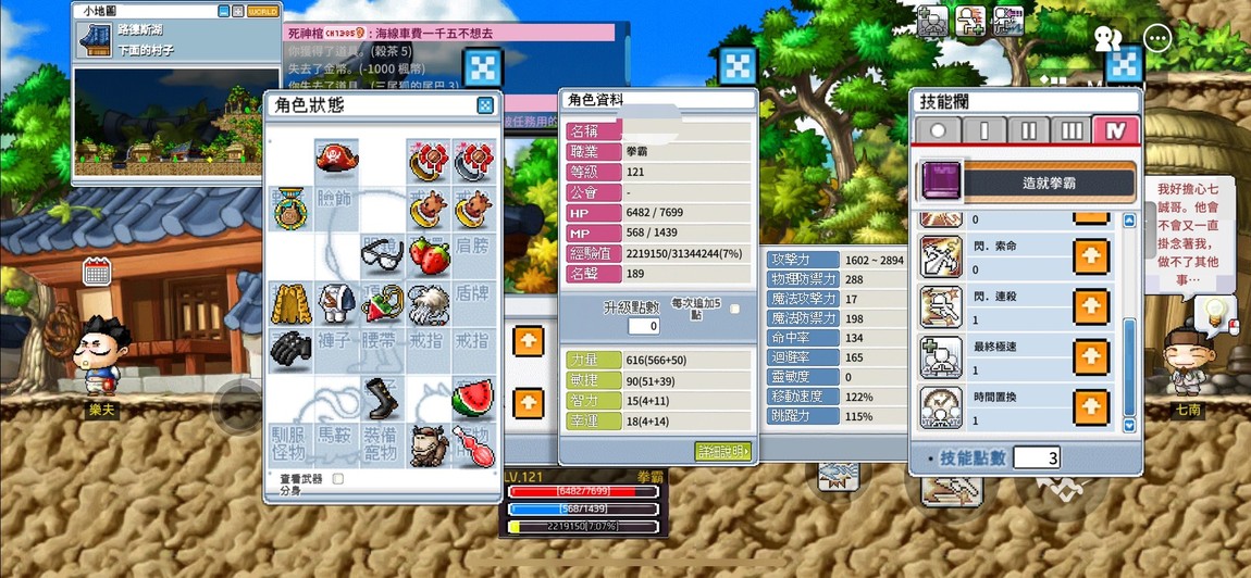 121拳霸 基本裝 急速機 有時裝 寵物123 包包380格 拉圖象徵43個