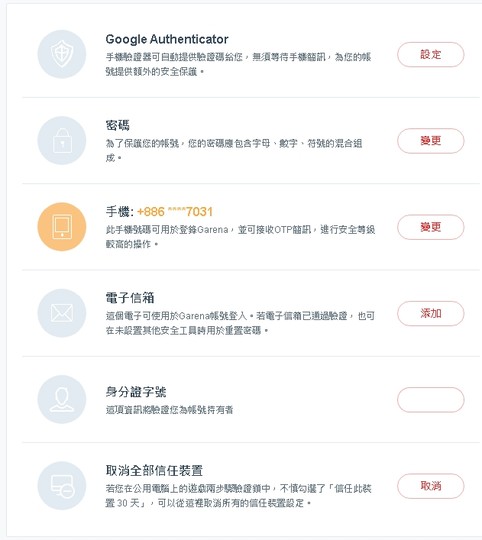 物品種類: 帳號