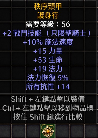 S13護身符項鍊 +2戰鬥(聖騎士)+10施放/14全抗/53生命/15力量