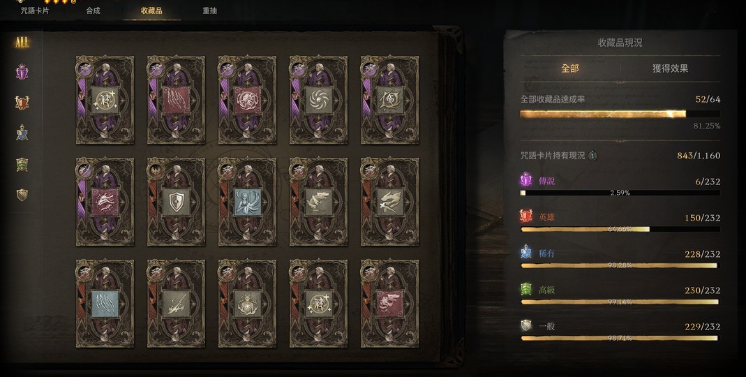 【變身收藏】: 收集卡片(79.56%)、完成收藏品 (56.17%)